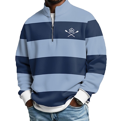 Per uomo Strisce orizzontali Polo con zip Manica Lunga Magliette polo Colletto alla coreana Casual Scuola Athleisure Ferie Abbigliamento quotidiano Stampa 3D Polo con cerniera a un quarto Primavera