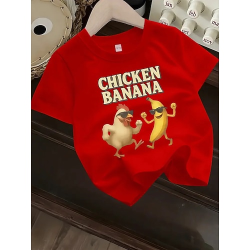 Cotone Bambini Ragazzi Nero Bianco Rosso Pollo e banana Grafico Maglietta Blusa Girocollo Maniche Corte All'aperto Abbigliamento Quotidiano Moda Streetwear Designer Base Estate Primavera