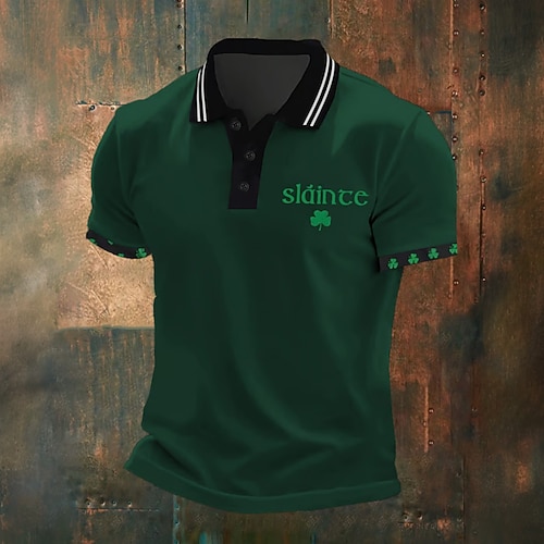 Giorno di San Patrizio Per uomo Trifoglio Polo Manica Corta Magliette polo Camicie con Colletto Casual Athleisure Abbigliamento da festa Bottoni Primavera Estate Nero Verde chiaro Verde
