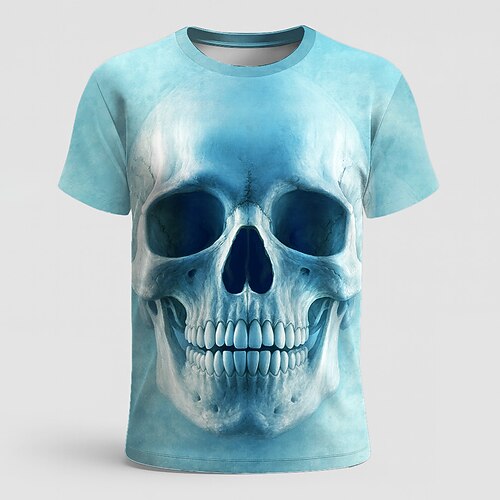 Per uomo Teschio 3D Maglietta Manica Corta maglietta Stampa 3D Girocollo Camicia Esagerato Designer Orrore Feste Streetwear Ferie Blu chiaro Cachi Estate Primavera Tutte le stagioni Abbigliamento S M