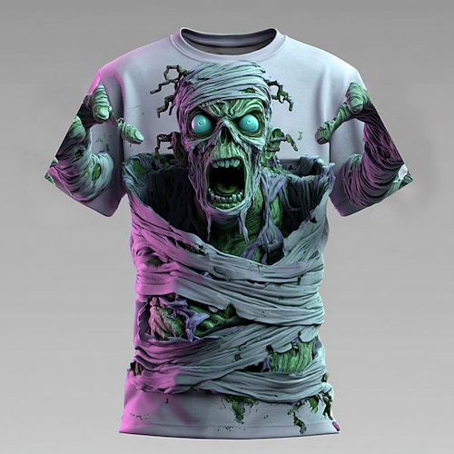 Per uomo Illusione ottica 3D Mummia Maglietta Manica Corta maglietta Stampa 3D Girocollo Camicia Esagerato Designer Orrore Feste Streetwear Ferie Blu Verde Cachi Estate Primavera Tutte le stagioni