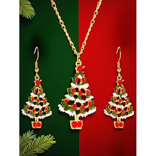Set di gioielli da donna a forma di albero di Natale con collana con ciondolo smaltato festivo e orecchini pendenti - accessori per feste natalizie e regali