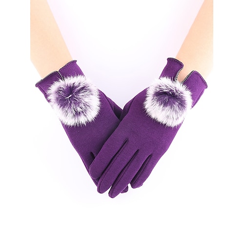 Guanti touchscreen natalizi da donna con pompon in pelliccia sintetica di coniglio, caldo tessuto in poliestere, vari colori, perfetti per la moda invernale e come regali per le feste