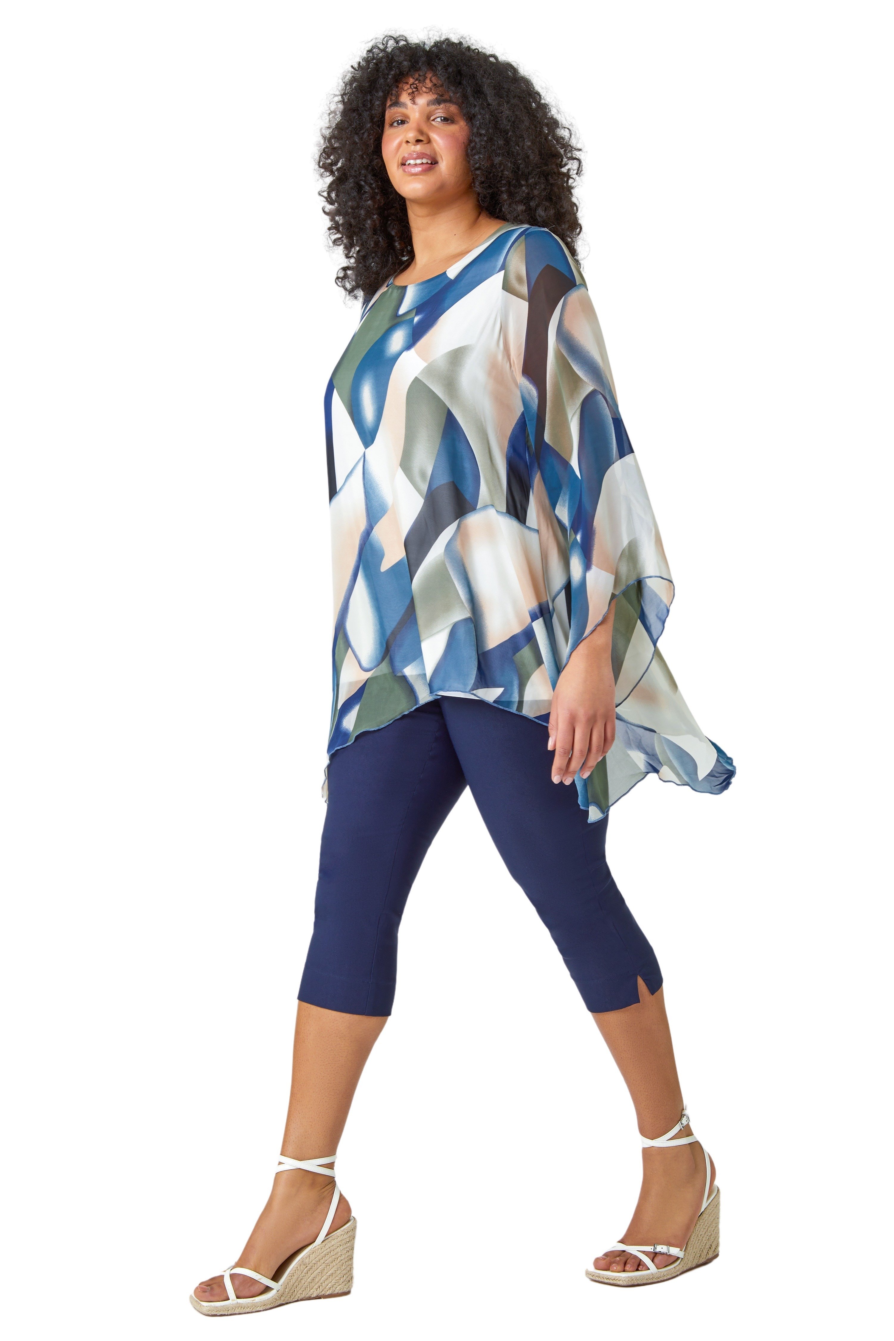 Roman Curve Womens Abstract Chiffon Overlay Top - Blue - Size 20 UK | Roman Curve Sale | Discount Designer Brands