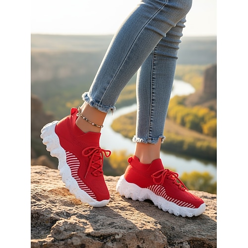 scarpe da ginnastica sportive da donna in Flyknit con lacci e suola ammortizzante – scarpe traspiranti in maglia per donna, passeggiate all'aperto, escursionismo, viaggi e fitness