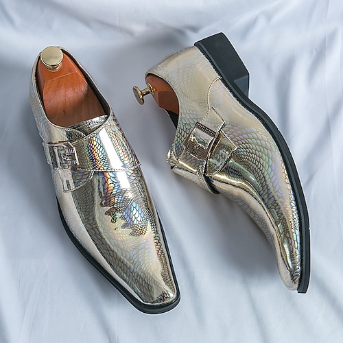 scarpe da uomo con doppia fibbia in vernice verde con stampa serpente e dettaglio fibbia: calzature formali eleganti per incontri all'avanguardia