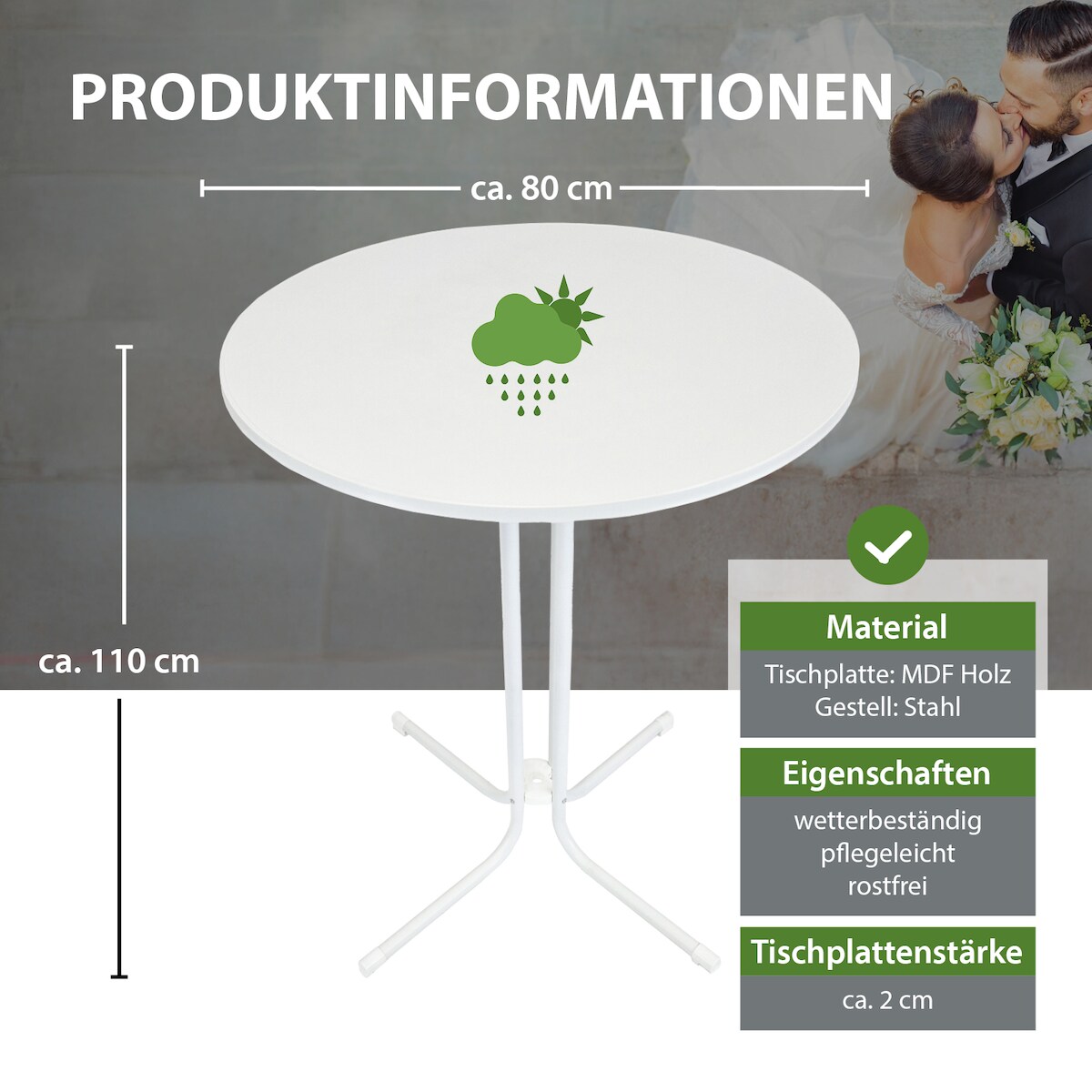 TRUTZHOLM 2x Stehtisch klappbar Ø 80 cm Höhe 110 cm Stahl Gastrotisch Partytisch Bistrotisch Tisch in Weiß