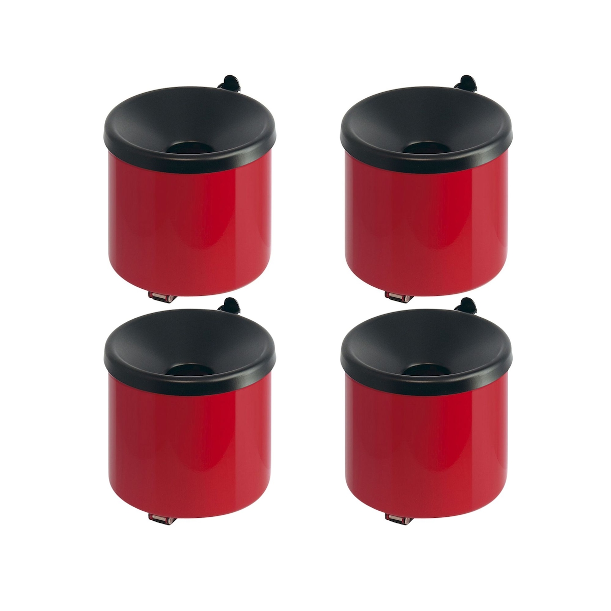 PROREGAL SparSet 4x Runder feuerlöschender Wandaschenbecher | 2 Liter | HxØ 16x16cm | Metal | Rot mit schwarzem Decker