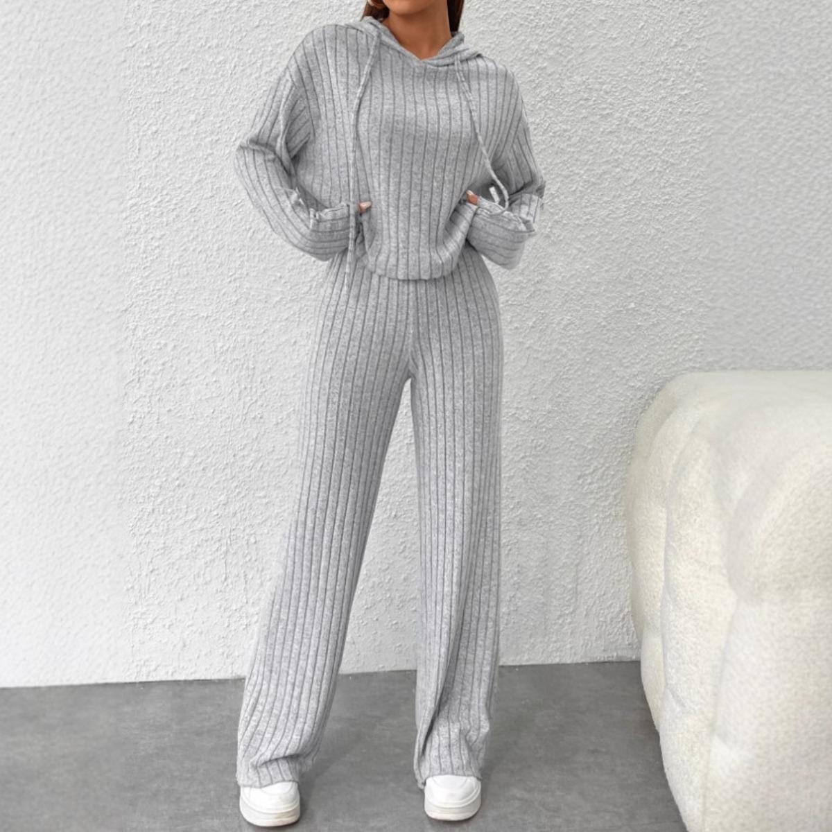 Autumn and Winter Casual Knitted Long Sleeved Set, Women's Hooded Sweatshirt, Loose Pants Two-piece Set cm green