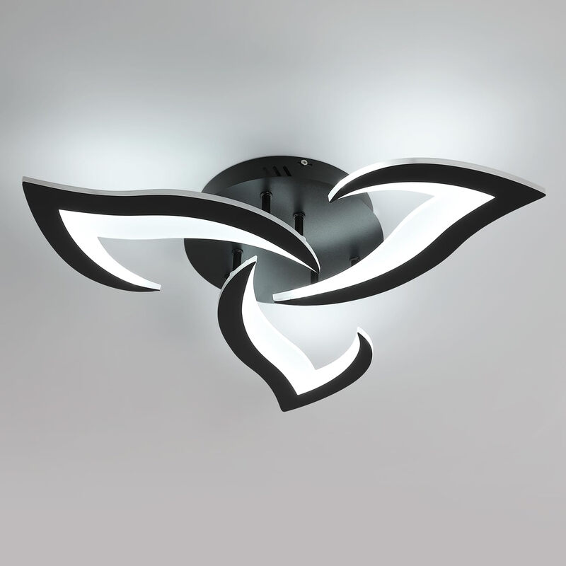 Goeco modernes LED-Deckenlicht 36 W 2900 LM Ø 58 CM Schwarz, kreatives Blütenblatt-Acryl, 6000 K Kaltweiß für Schlafzimmer, Wohnzimmer, Esszimmer, Küche