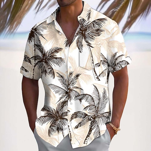 Per uomo Albero di Cocco Piante Tropicali Camicia hawaiana estiva Camicia con Bottoni Camicia Aloha Manica Corta Hawaiano Vacanza Ferie Abbigliamento mare Estate Collo ripiegato Stampa 3D Una tasca