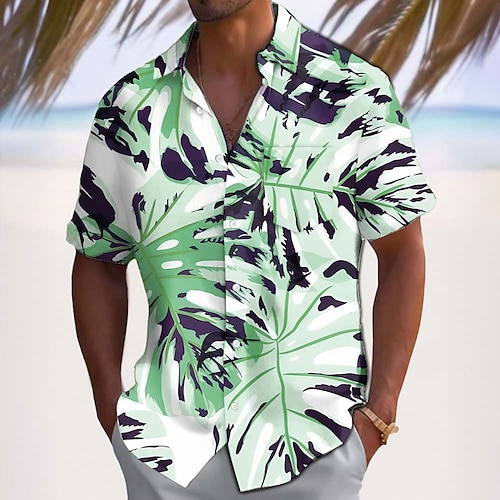 Per uomo Foglia di palma Piante Tropicali Camicia Camicia hawaiana estiva Camicia con Bottoni Manica Corta Hawaiano Vacanza Abbigliamento mare Estate Primavera Collo ripiegato Stampa 3D camicie con