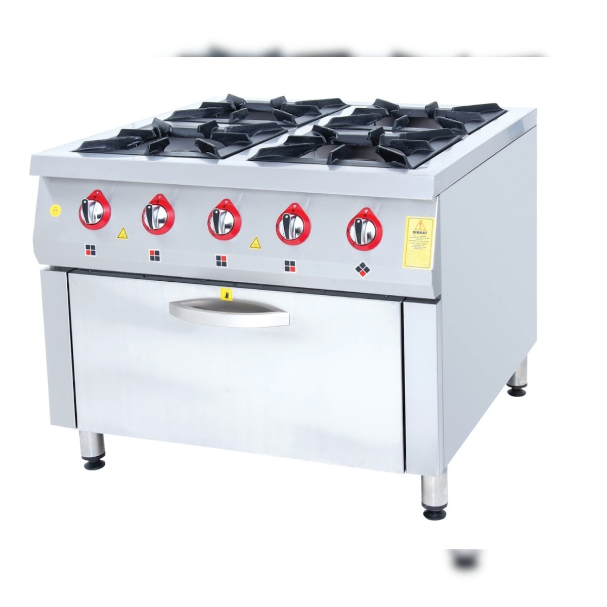 Stalgast Edelstahl Gasherd mit 4 Brennern (3,5+5+2x7) und Gas-Backofen GN2/1, Serie 700 ND
