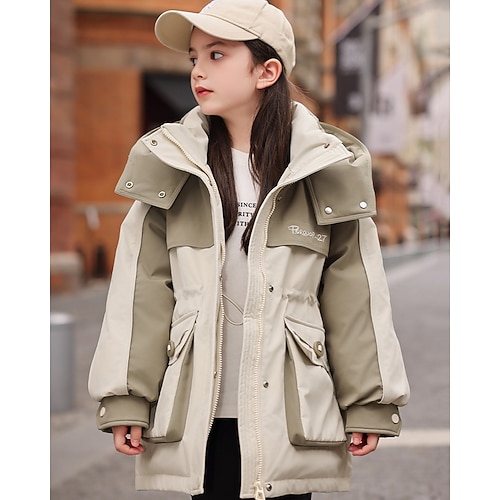 Bambini Ragazze Giacca in piuma Giacca Imbottita Blocco di colori Sport Tasca Tenere al caldo Antivento All'aperto Cappotto Capispalla 5 anni Inverno Rosa Viola Cachi