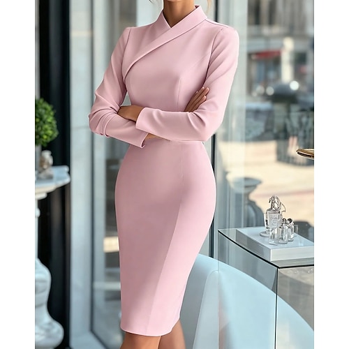 Per donna Abito Lungo Maxi Abito Tubino Abito Formale Elegante Moda Moderno Quotidiano Ufficio Ferie Vestibilità regolare Semplice Manica Lunga Collo alla coreana Rosa Viola Azzurro Primavera Autunno