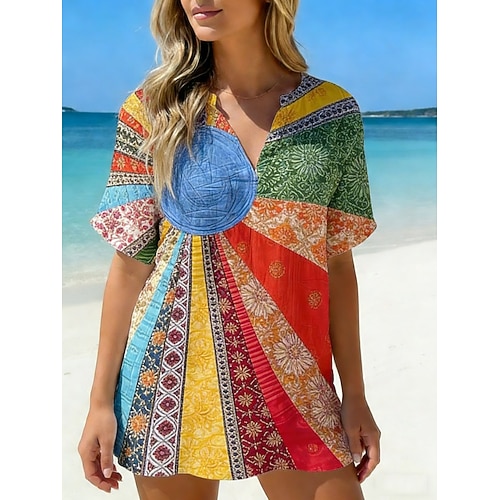 Per donna Camicia Camicia casual Camicia da Spiaggia Blusa Stampato Floreale Grafico Bohemien Elegante Moderno Manica Corta Scollo a V Top Regolari Quotidiano Ferie Uscire Blu Giallo Verde chiaro