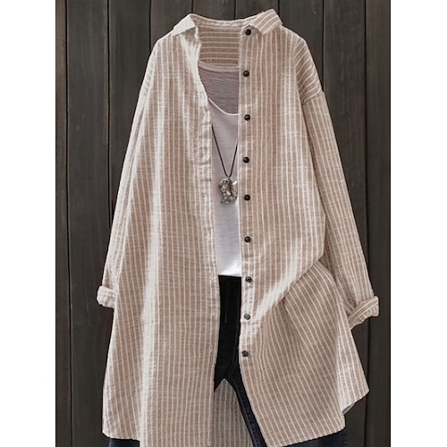 Per donna Camicia Camicia button-down Camicia casual Bottoni Geometrico Elegante Classico Moderno Manica Lunga Colletto a Camicia Top Regolari Quotidiano Lavoro Ferie Nero Marrone Cachi Estate