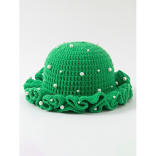 Cappello da donna lavorato a maglia con trifoglio e perle, vari colori, perfetto per il giorno di San Patrizio, il carnevale e l'uso quotidiano