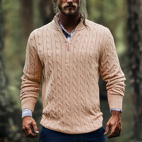 Per uomo Maglione Maglione in maglia a trecce Maglione con toppe A Coste Maglia Top Regolari Lavorato a maglia Semplice Collo alla coreana Vintage Tenere al Caldo Abbigliamento quotidiano Uscire