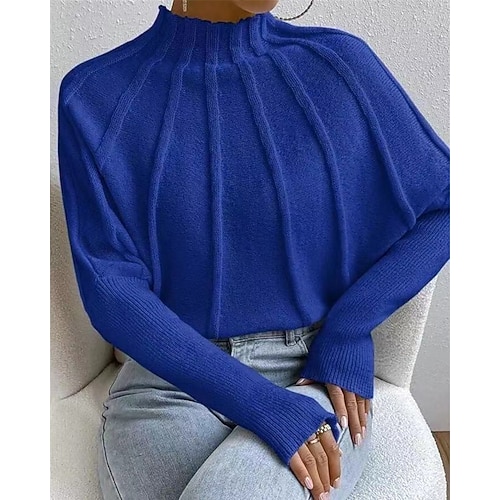Per donna Felpa Maglione Moda Casual Tinta unica A Coste Collo alto Lavorato a maglia Manica Lunga Top Regolari Maglia All'aperto Quotidiano Weekend Nero Blu Autunno Inverno