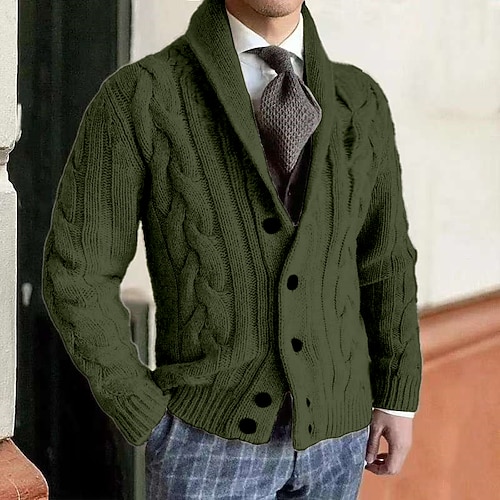 Per uomo Felpa Maglione elegante Cardigan A Coste Treccia Maglia Top Regolari Lavorato a maglia Semplice Collo a scialle Vacanza Moda Casuale Abbigliamento quotidiano Abbigliamento Primavera Autunno