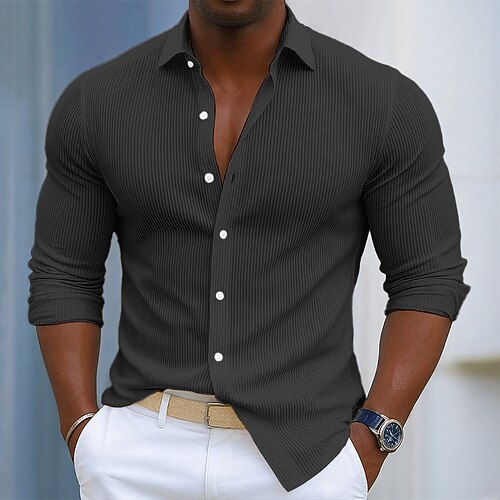 Per uomo Camicia Camicia di Velluto a Coste Camicia con Bottoni Nero Bianco Blu marino Blu Viola Manica Lunga Semplice Collo ripiegato All'aperto Vacanza Bottonato Abbigliamento Cotone Moda