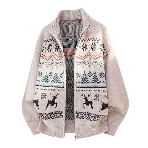 Per uomo Cardigan Maglione Corto Maglione con Zip Maglione a maglia A Coste Maglia Top Regolari Lavorato a maglia Renna Collo alla coreana Natale Moda Vacanza Abbigliamento quotidiano Abbigliamento