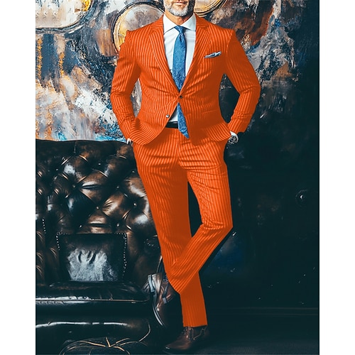 Per uomo Abiti Giacca Attività commerciale Cocktail party Ricevimento di matrimonio Di tendenza Informale Primavera Autunno Poliestere Strisce Bottoni Tasche Comodo Monopetto Giacca Giallo Blu