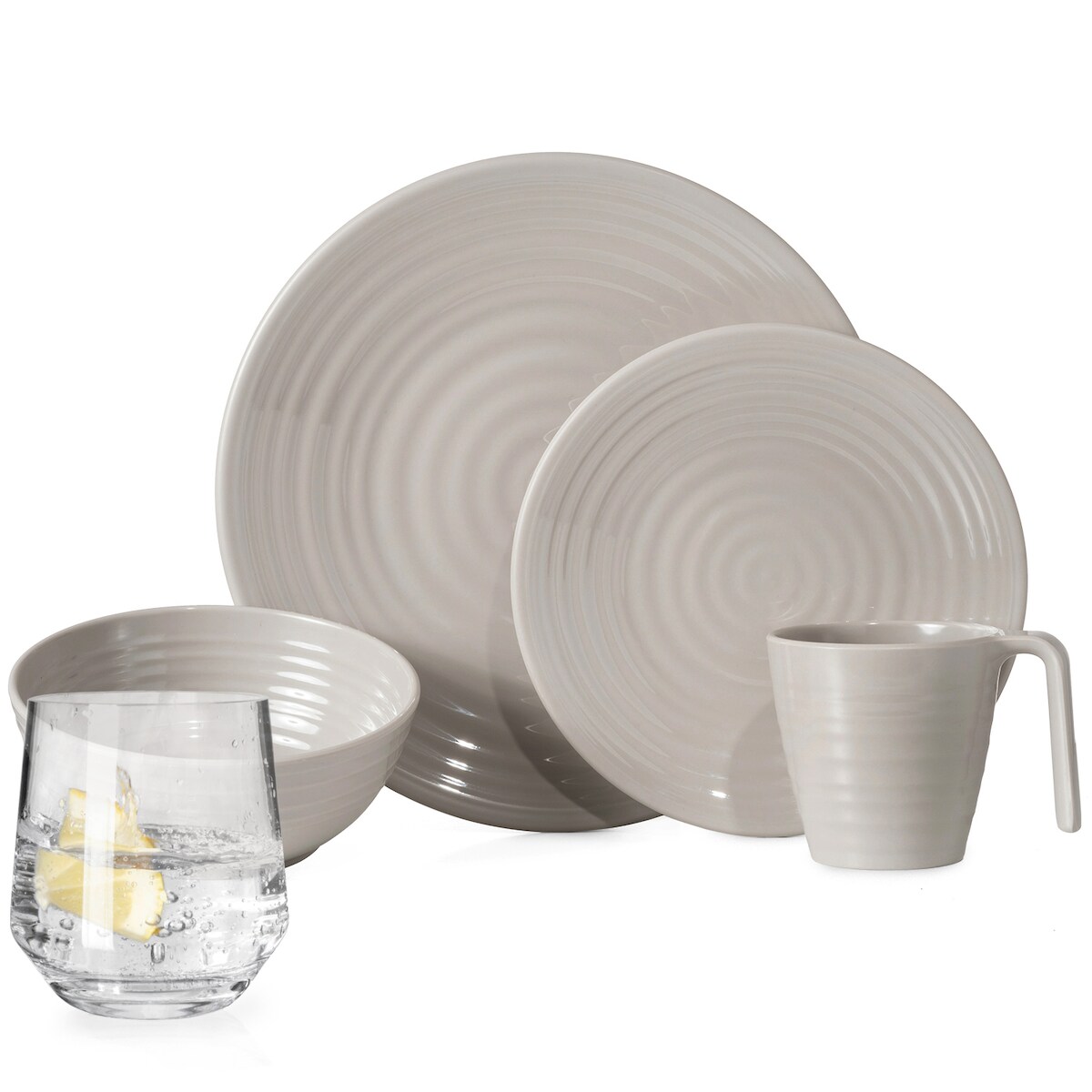 Moritz Melamin Geschirr-Set 4 Personen Coffee Design 16 Teilig + Milano Gläser Wassergläser Tafelgeschirr Picknick BBQ Kochgeschirr