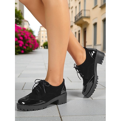 Oxford stringate da donna in pelle scamosciata bordeaux e similpelle verniciata con tacco spesso – stile vintage anni '50, perfette per uscite informali, autunnali e riunioni del fine settimana