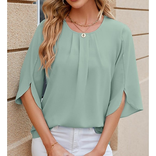 Per donna Maglietta Semplice Moda Moderno Manica Corta Scollo a V Top Regolari Quotidiano Uscire Blu Estate