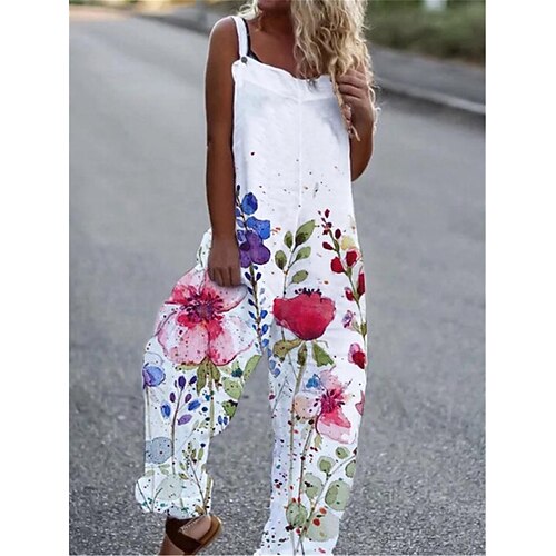 Per donna Salopette Attivo Floreale Senza Maniche con tasca Vacanza Quotidiano Vestibilità comoda Rosa Blu Verde Estate