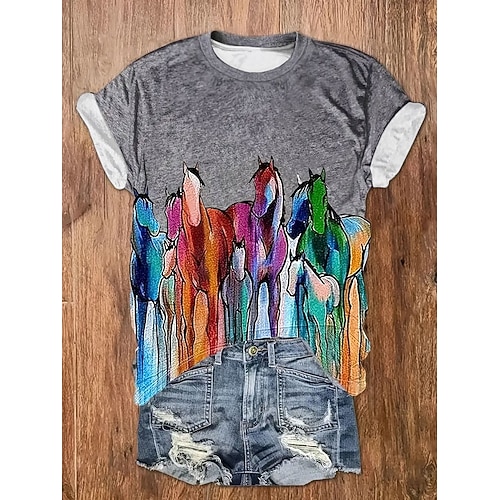 Per donna Maglietta Floreale Casual Manica Corta Girocollo Top Regolari Quotidiano Stampato Bianco Giallo Rosa Viola Verde Estate