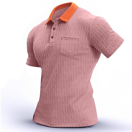 Per uomo Rombi Polo Manica Corta Colletto Polo Affari Casual Quotidiano Bottoni Tasca Estate Rosso rubino Grigio Verde