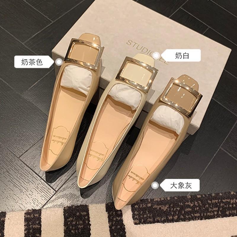 Second hair! Grape mother same shoes classic square buckle square head shallow mouth short heel horseshoe and flat commuter shoes cm