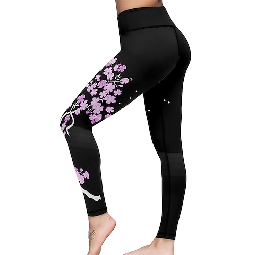 Per donna Ghette Sports Gym Leggings Pantaloni da yoga Elastene Nero Leggings corti Floreale Fasciante in vita Sollevamento dei glutei Abbigliamento Abbigliamento Yoga Fitness Allenamento in palestra