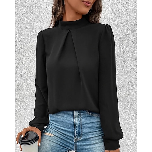 Per donna Camicia Elegant Elegante Raso/Satin Tinta unica Elegante Casual Manica Lunga Collo Alto Top Regolari Quotidiano Uscire Nero Giallo Verde chiaro Rosso Viola Primavera Autunno