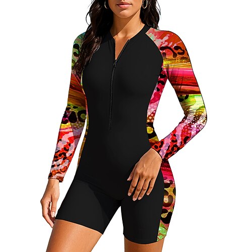 Per donna Costume da Bagno Rash Guard Leopardo Floreale Protezione Solare UV UPF50 Asciugatura Rapida Manica Lunga Body costume da bagno Cerniera Frontale Surf Spiaggia Sport Acquatici Estate