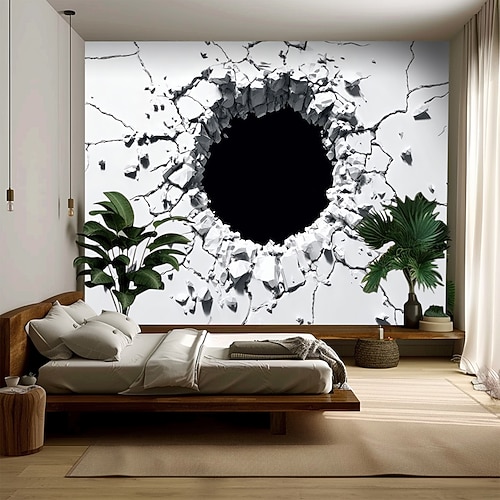 Arazzo da parete rotto 3D, realistico, in pietra screpolata, decorazione da parete con buco nero, grande tessuto artistico per camera da letto, soggiorno, sala giochi, sfondo