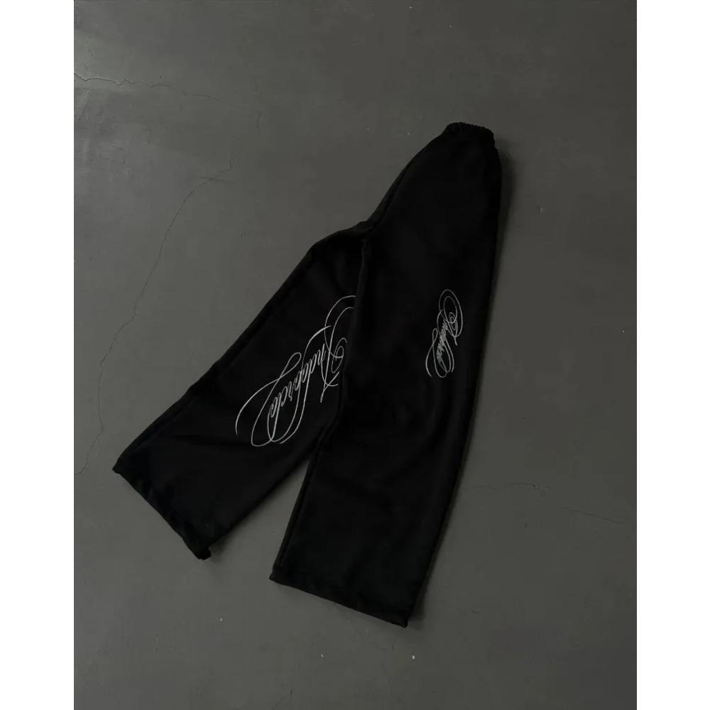 RogueWave American Vintage Letter Print Jeans Women's Black Gothic Y2k Loose Denim Pants Fashion Hip Hop Wide Leg Casual Streetwear cm black