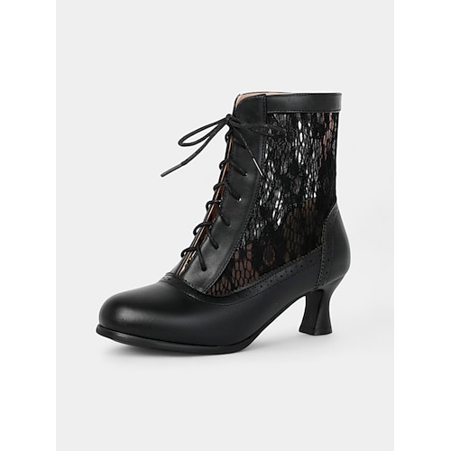 stivaletti vittoriani in pizzo bianco da donna – scarpe da sposa, da festa e da sera in stile edoardiano vintage anni '20 con tacco basso e lacci