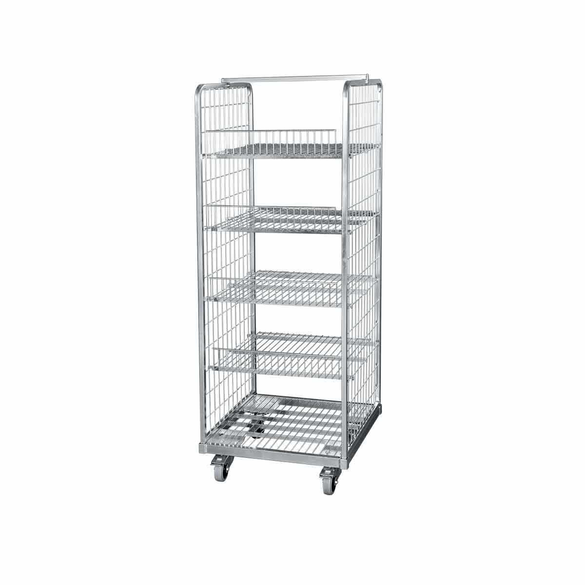 Oswald Transportgeräte Stahlrollbehälter 600, 610 x 610 x 1.675 mm, mit 4 Zwischenböden mit Aufkantung 100 mm, 2-seitig, Nutzhöhe 1.490 mm, Rollplatte aus Metall, 500 kg