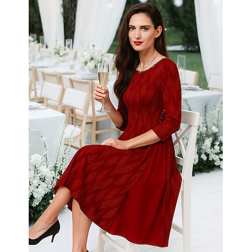 Abito da ballo a linea A di lunghezza tè Abito da festa Abito da cocktail Abito per la madre della sposa a maniche 3/4 con scollatura rotonda elegante vintage per feste con perline