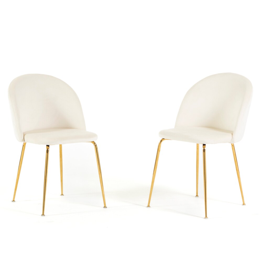 RATTATAN Set aus 2 Innenstühlen aus Samt, gepolstert, mit Metallbeinen, elegantes Design für Küche, Esszimmer, Bar und Restaurant – Sara – Weiß/Gold