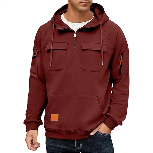 Per uomo Felpa con cappuccio Maglione Felpa con cappuccio e zip corta Rosso bordeaux Nero Bianco Verde militare Blu marino Con Cappuccio Semplice Tasca Sport Outdoor Casuale Quotidiano Streetwear