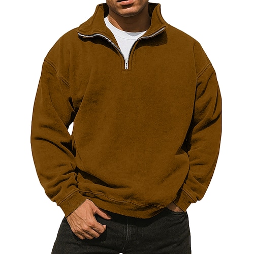 Per uomo Felpa con zip corta Nero Blu marino Blu Verde Cachi Collo Alto Semplice Lavoro Sport Outdoor Casuale senza stampa Cool Casual Maglione Primavera Autunno Abbigliamento Felpe con cappuccio