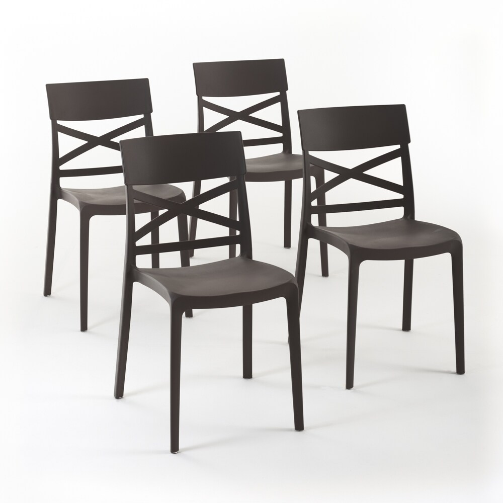 RATTATAN 4er-Set stapelbare Stühle aus Polypropylen mit Glasfasern für Außenbereich und Garten, Bar und Restaurant, Küche modernes Design - MARTINA - Mokka