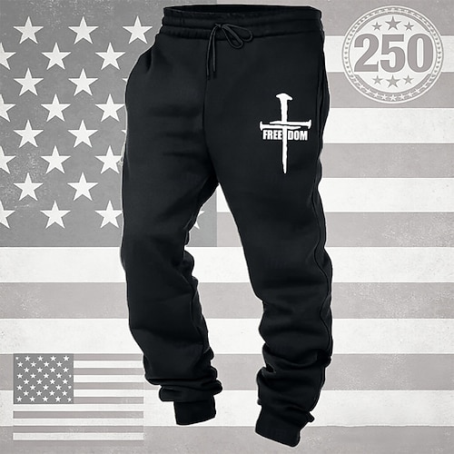Per uomo Pantaloni da tuta Joggers Pantaloni Coulisse Tasca Elastico in vita Croce Comodità Traspirante Quotidiano All'aperto 250° anniversario dell'America Vacanza Moda Blu Nero Micro-elastico