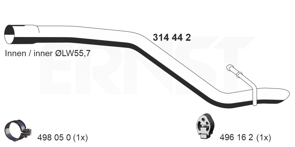 ERNST Abgasrohr 314442 hinten für FORD 1677768 3M51-5255-DA ME3M5J-5255-D1A