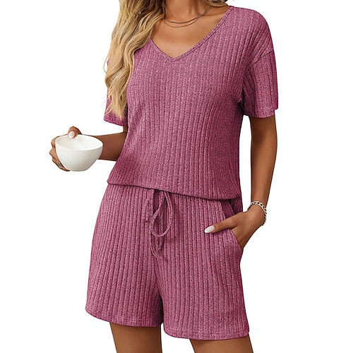 Per donna Set di Pantaloncini Bolero Top Manica Corta Scollo a V Semplice Coulisse Patchwork Elegante Moda Streetwear Casuale Quotidiano All'aperto Nero Rosa scuro Viola Estate Vestibilità regolare